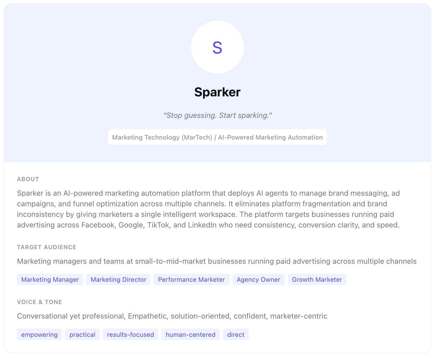 From automatic brand discovery to funnel scoring, see how Sparker turns your marketing data into actionable insights.